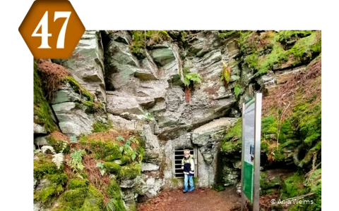 Eine Laune der Natur? Auch das, ja. Das von Moosen und Flechten überzogene Waldstück mit seinen wild durcheinander gewürfelten Felsen – auch Kegelkarstlandschaft genannt – ist wie ein kostbares Fenster in die ferne Tertiär-Zeit. Aber zusätzlich wimmelt es hier von Schächten und Stollen, die Generationen von Erzschürfern tief in die Erde trieben – zu einer Zeit, als im Ruhrgebiet noch Kühe weideten …