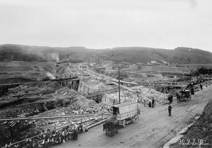 Zeitgenössische Fotografien vermitteln einen Eindruck vom Bau der Möhnetalsperre. Ebenso behandelt wird die Zerstörung der Staumauer im Zweiten Weltkrieg (17.05.1943) und ihre Folgen. Den Abschluss bilden der Wiederaufbau sowie jüngere Aufnahmen.