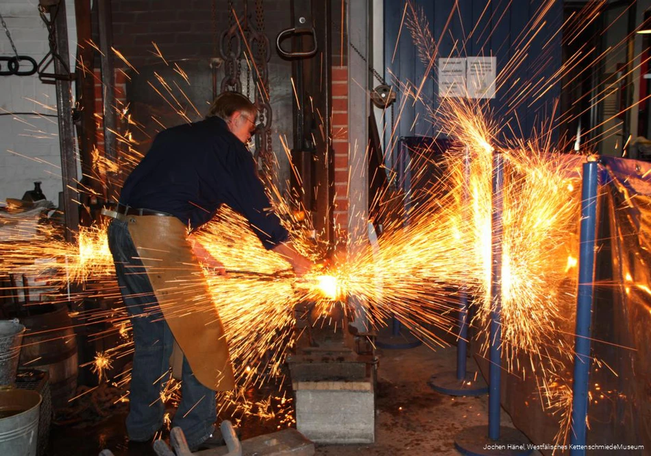 When blacksmith Scrooge Köster strikes the anvil, sparks fly.