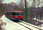 A rail bus in 1983 below the Klusenstein castle.