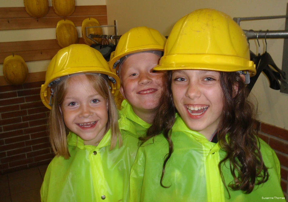 At the beginning of the 90-minute guided tour of the visitor mine, the young and old visitors put on their helmets and jackets and set off down the gallery, which also served as a haulage route and where horses and wagons were used to transport the ore away. Then it's off into the mountain by mine train.