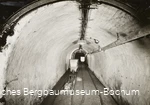 The second sequence shows different working stages underground in the mid-1950s: a single-chain conveyor, a hewer with a mining hammer, the (then modern) fully mechanised mining with a cutting machine, the support, i.e. the securing with an iron cap, and a chain-drawn fast planer. The coal enters the hoisting cars via a long rubber belt, which are taken to the "filling point" where the cars are mechanically transferred to the hoisting cage.