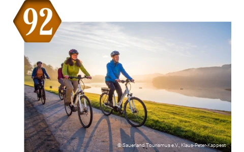 Fietsen waar ooit de treinen van het industriële tijdperk denderden: over 113 kilometer met weinig hellingen loopt de Ruhr-Sieg-fietsroute door een heuvelachtig gebied vol natuurbeleving en volgt over lange trajecten voormalige spoorlijnen. Een van de vele hoogtepunten: het uitzicht over de machtige Biggesee, een geliefd vakantieparadijs en als een van de grootste stuwdammen van Duitsland nog steeds belangrijk voor de watervoorziening van het Ruhrgebied …