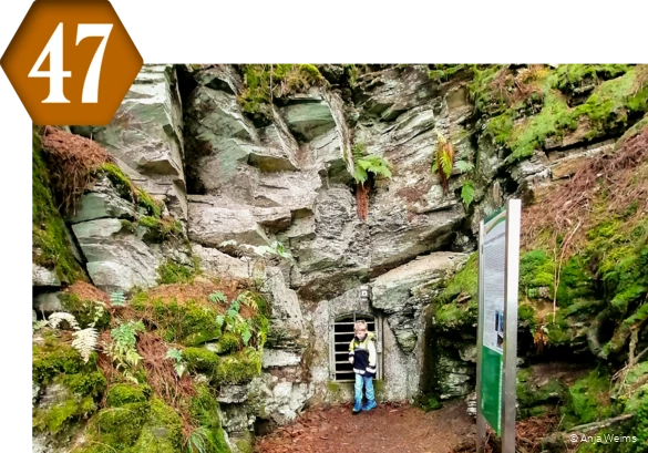 Nu is het over heuvels en dalen en hoog. Rondom het smalle Valmetal rijzen enkele van de hoogste toppen van het Sauerland op. Ik laat u rookgasschoorstenen zien die dikke lucht beneden in de nederzetting voorkomen, maar ook weidse uitzichten en diepe inzichten, terrils en tunnels. Trouwens, stevige schoenen zijn hier erg handig...